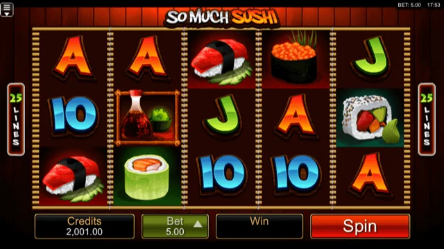 You can also play the So Much Sushi slot machine at these mobile casinos: Vera and John Casino, 32Red Casino, Rizk Casino