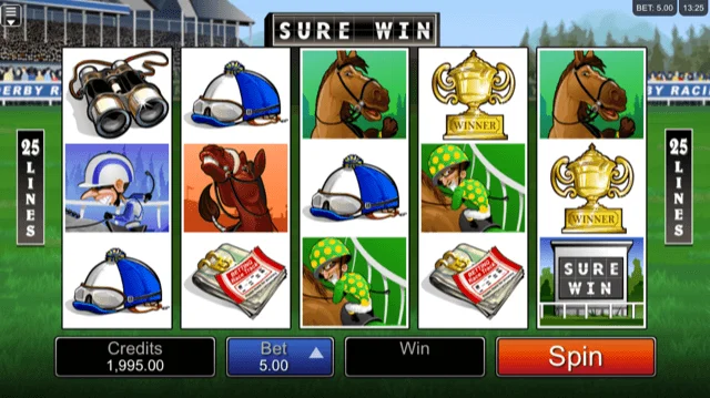 Sure Win slot machine is a horse racing themed game from Microgaming that whilst maybe not looking as graphically smart as other games is actually pretty decent. The mobile slot features a jackpot of 7,000x line bet, and has a RTP of 96.29% giving you a good return. There is also one bonus feature which is activated by 3 ‘Punter’ symbols, and gives you up to 20 free spins and a multiplier. So, if this sounds like it might be the game for you, then check out the full Sure Win slot review below.